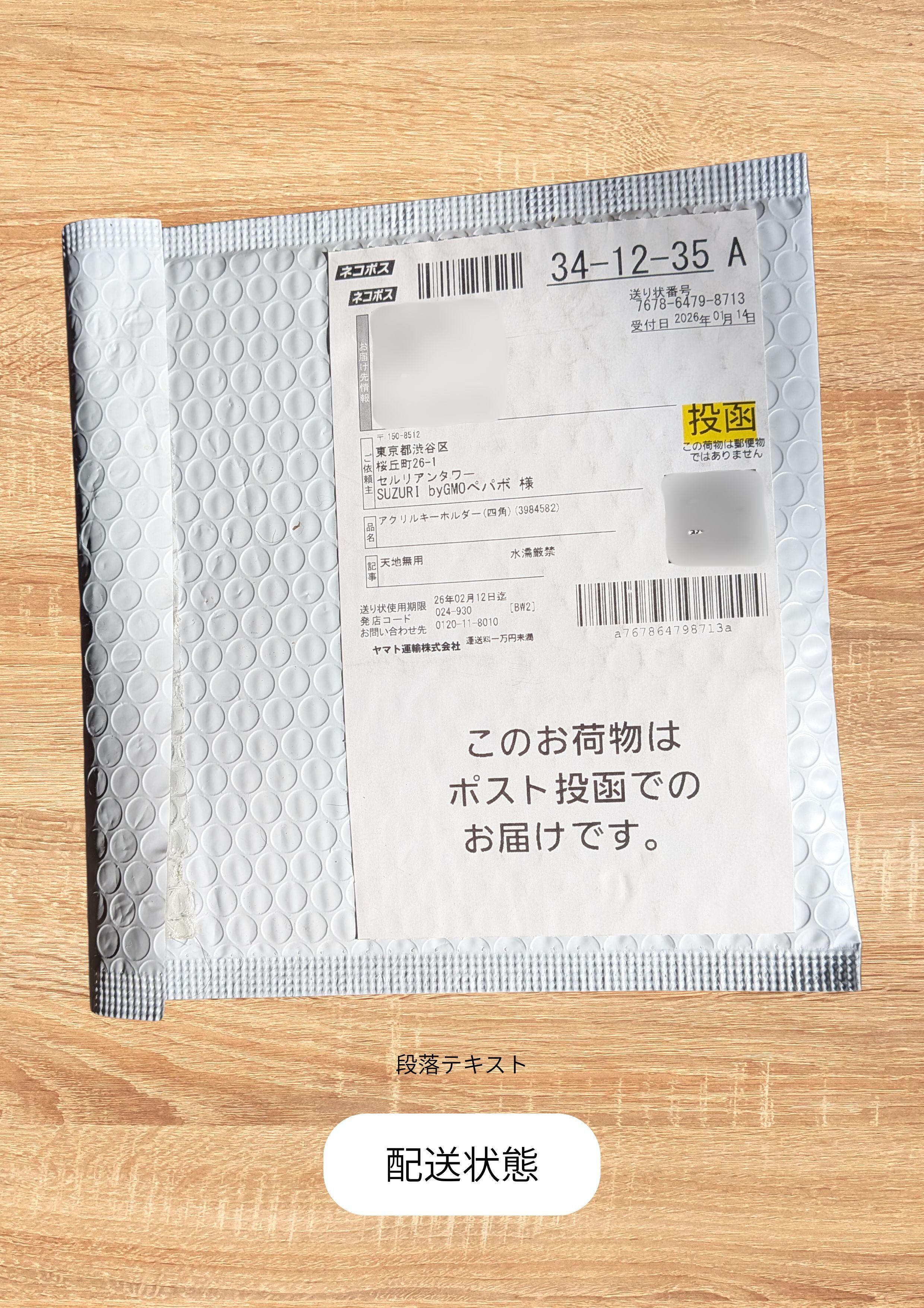 ・ポスト投函でのお届けです